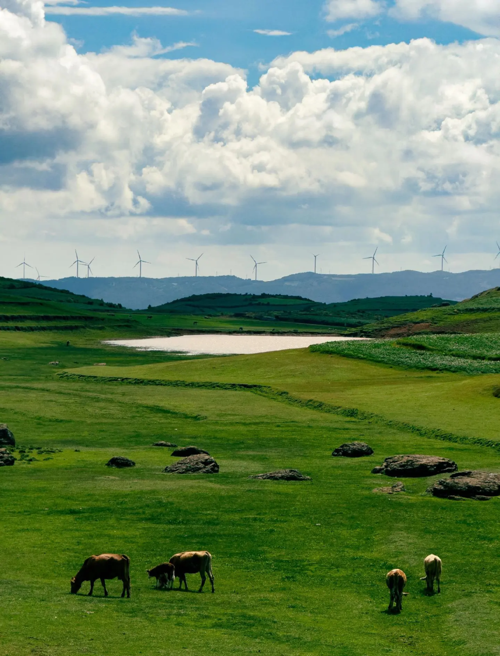 千亩绵延无尽绿毯沿山势倾泻