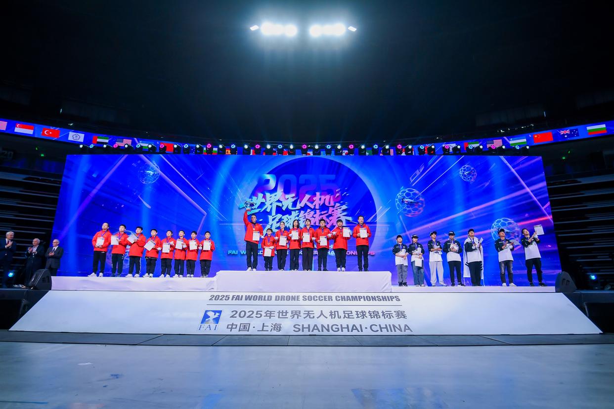 全球首个由国际航空运动联合会(FAI)主办的国际A类无人机足球赛事——2025年世界无人机足球锦标赛18日在上海体育馆收官,中国队包揽F9A-A、F9A-B两个组别的冠、亚军。