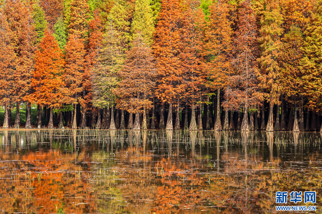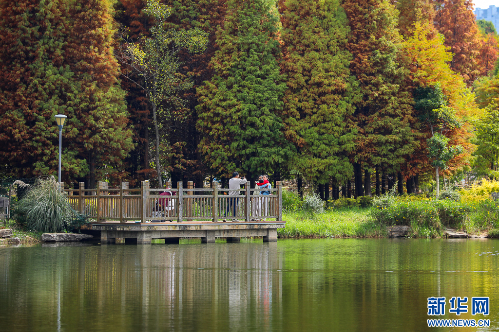 入冬后的昆明海洪湿地迎来了别样景致,水杉林褪去翠绿,换上红黄交织的“冬装”,与碧水相互映衬,色彩斑斓如油画。(完)