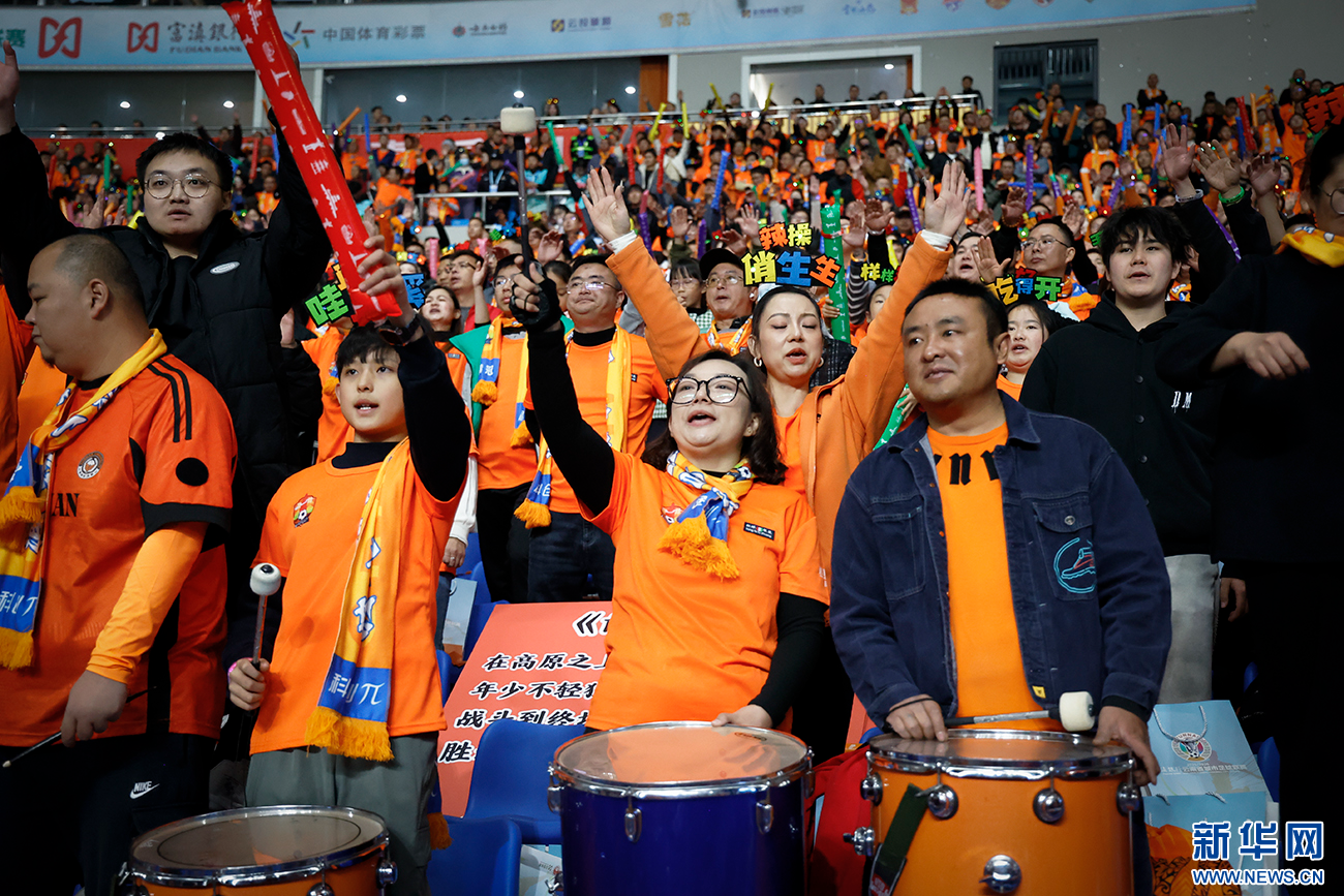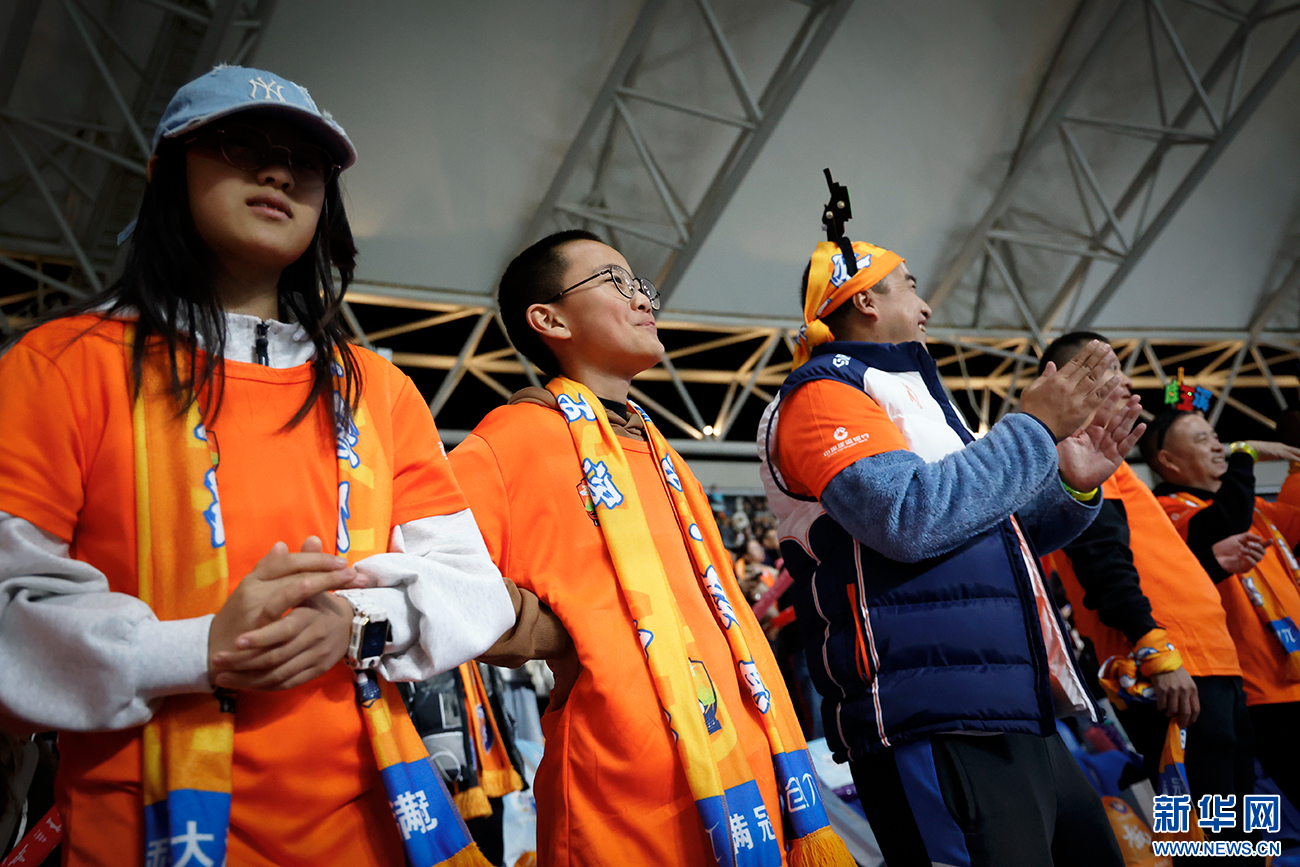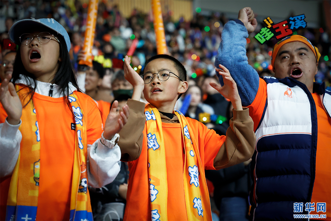 与家长一同为球队助威的“小球迷”(11月29日摄)。新华网发(丁凝 摄)