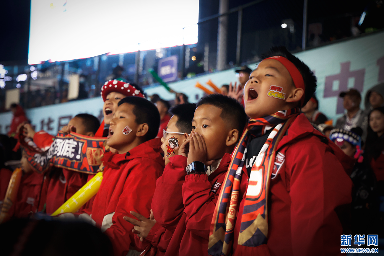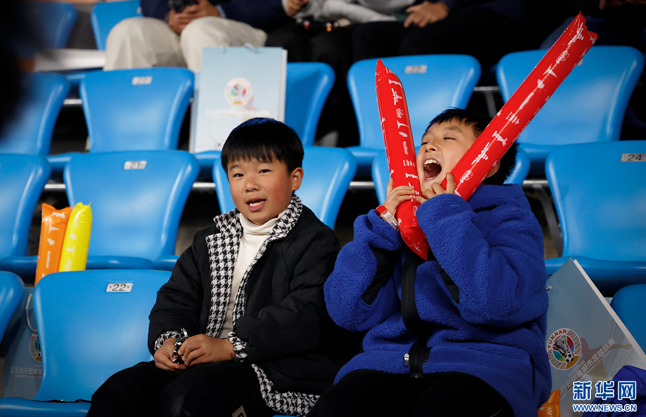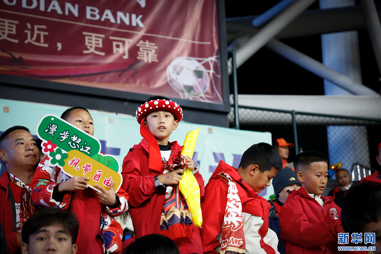 “滇超”赛场上的“小球迷”(11月29日摄)。新华网发(丁凝 摄)