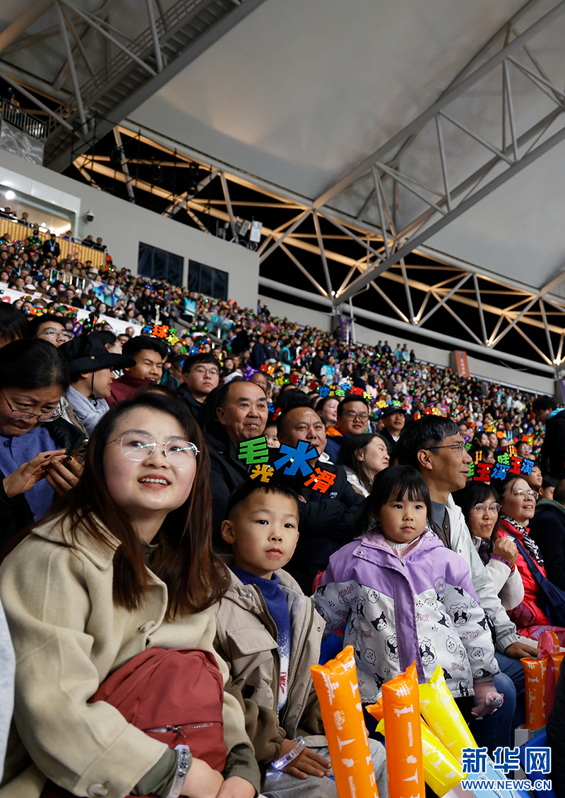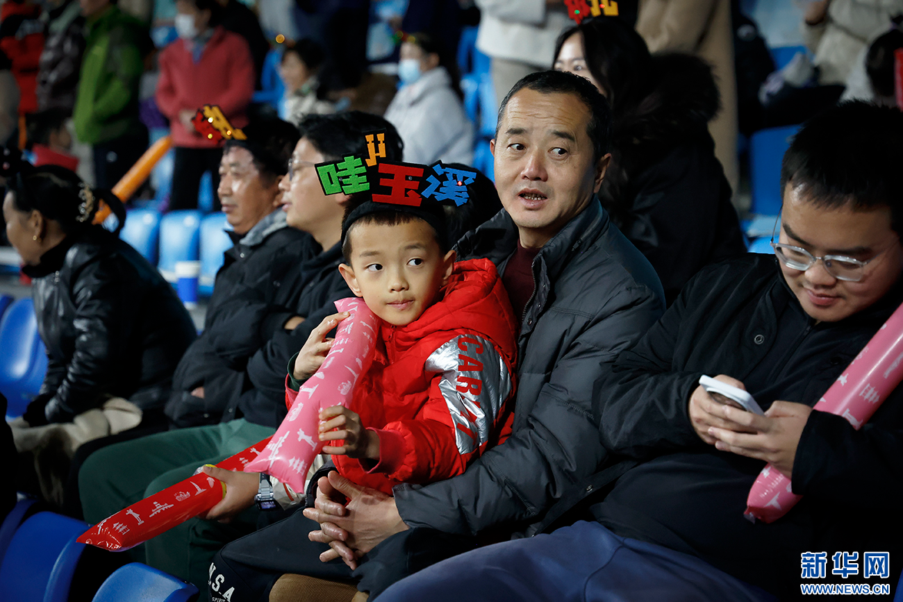 与家长一同观赛的“小球迷”(11月29日摄)。新华网发(丁凝 摄)