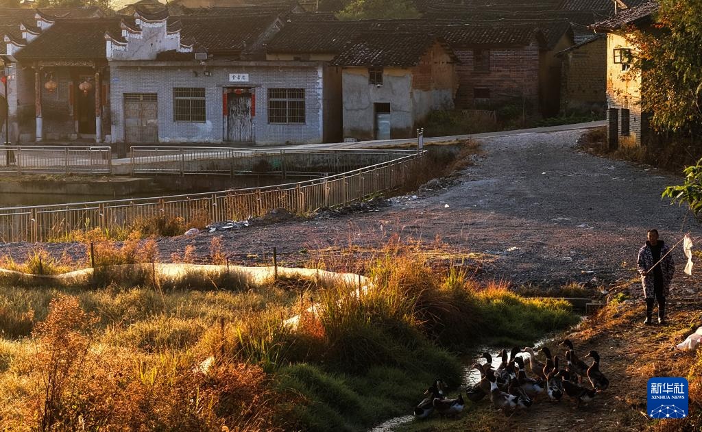 11月24日,郴州市汝城县金山村村民在放鸭子。