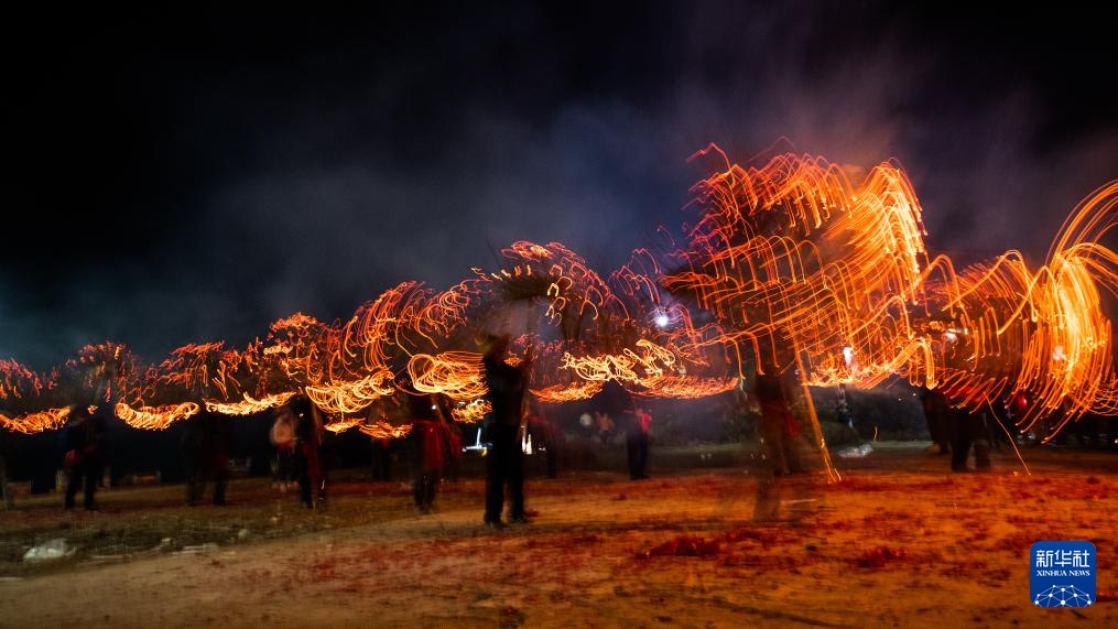 郴州汝城县居民舞动已点燃的香火龙(资料照片)。