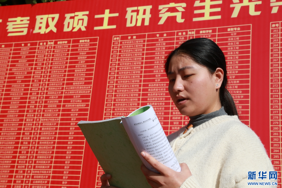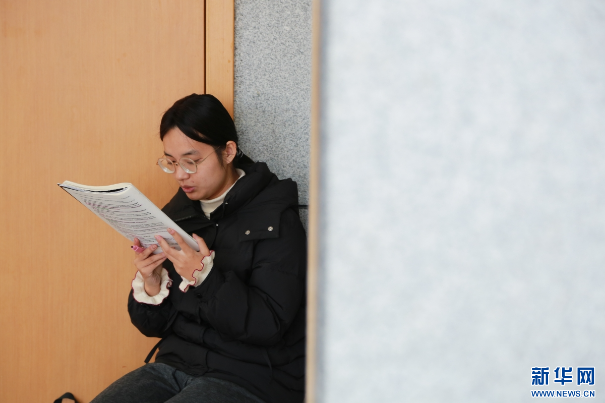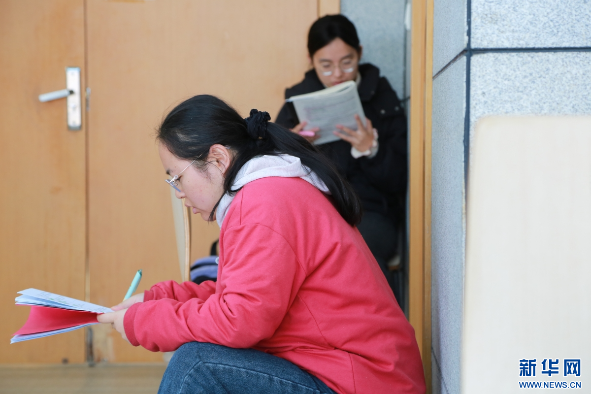 红河学院内,考研的同学在校园一角看书复习(12月6日摄)。新华网发(薛莹莹 摄)