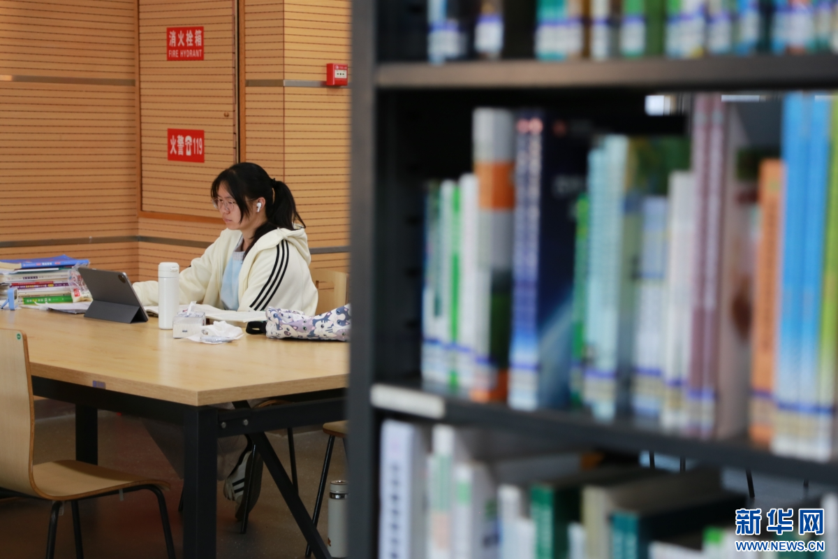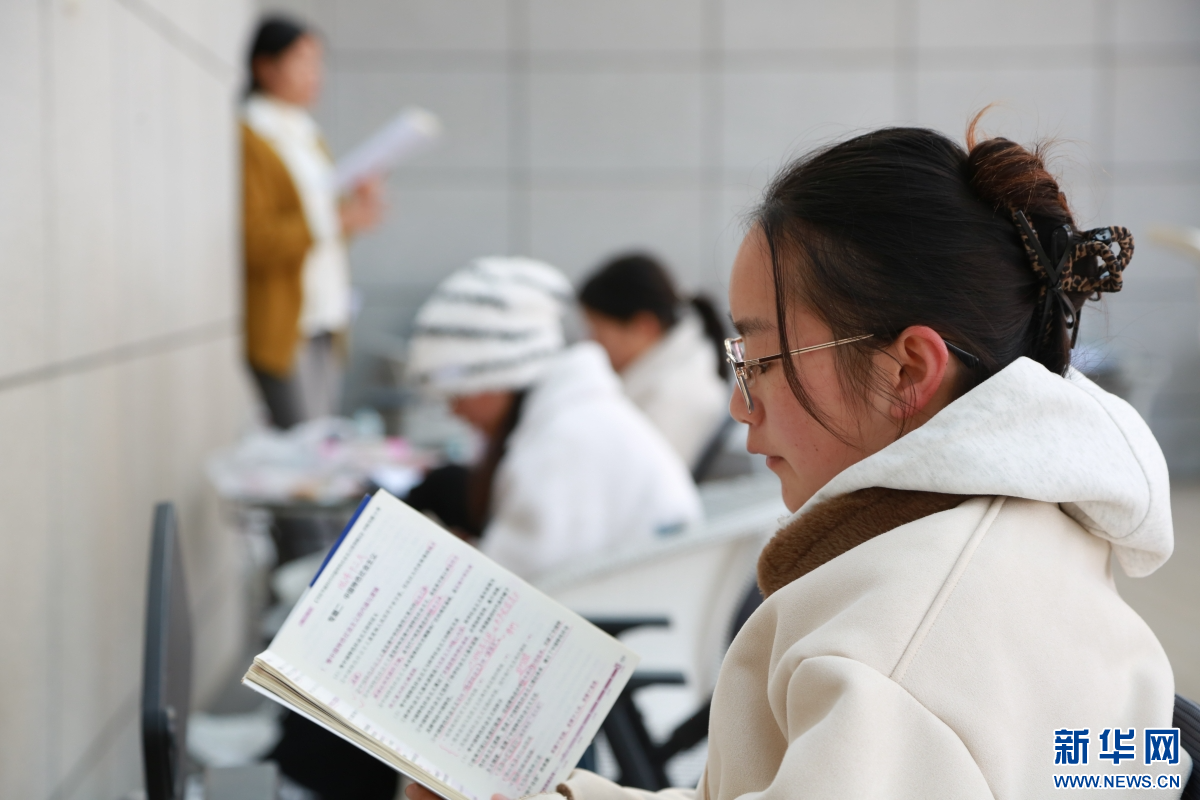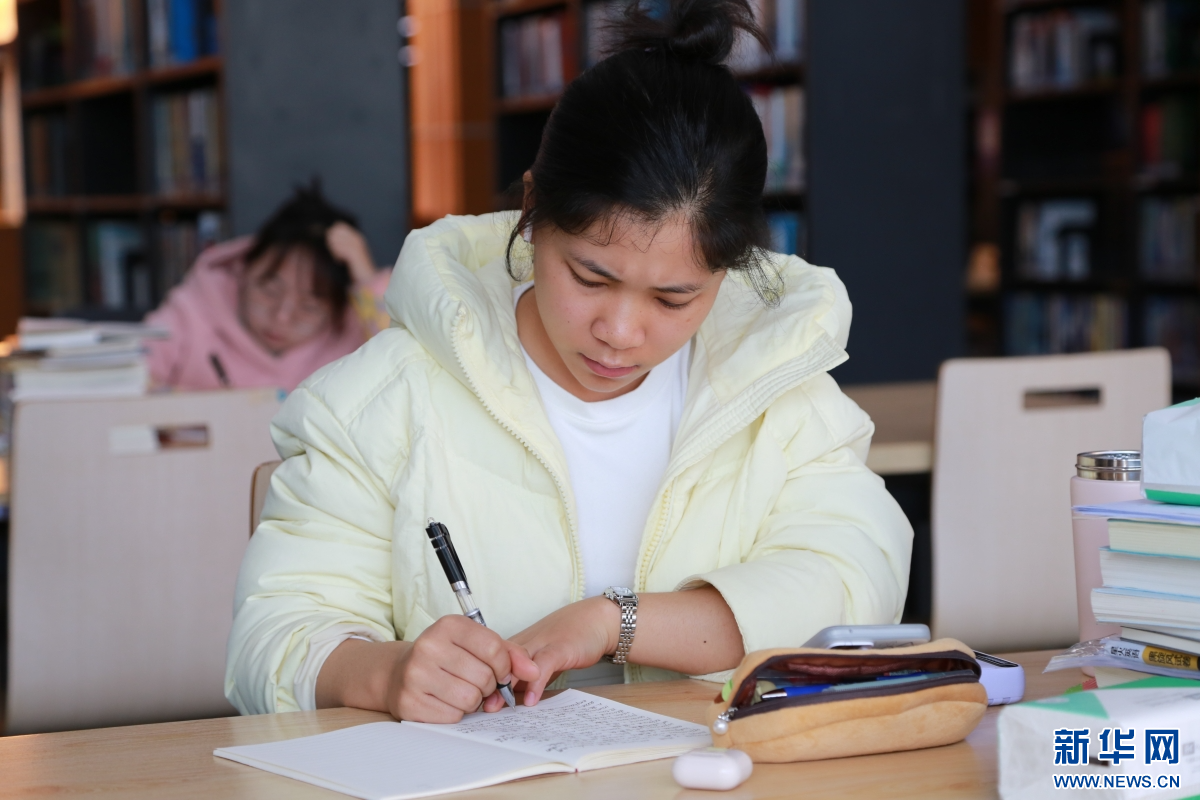 红河学院内,考研的同学们在图书馆内看书复习(12月6日摄)。新华网发(薛莹莹 摄)