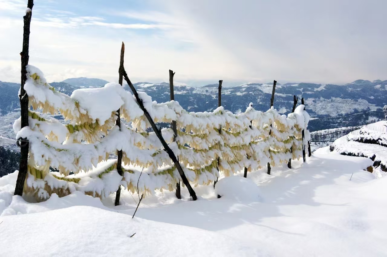 午后的村庄里,老人们围坐在火塘边,烤着洋芋、聊着家常,火光映红了脸庞,欢声笑语驱散了冬日的寒意;孩子们在庭院里追逐嬉戏,是无忧无虑的快乐。傍晚时分,家家户户炊烟袅袅,饭菜的香气弥漫在村庄的每一个角落,一碗热气腾腾的土鸡汤、一盘软糯的粉蒸肉、一碟酸辣的萝卜腌菜,简单的饭菜里,藏着最踏实的幸福。
