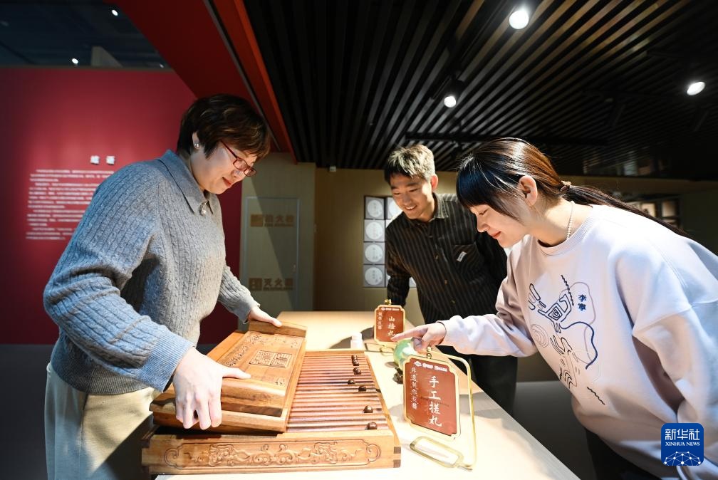 12月25日,在位于天津市南开区的达仁堂中医药博物馆,工作人员在展示手工搓丸技艺。