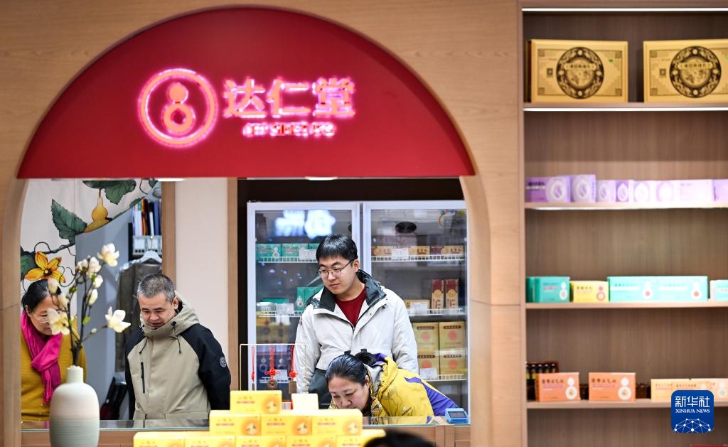 12月24日,在位于天津古文化街的达仁堂健康生活馆,顾客在选购药品。
