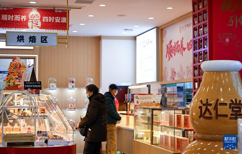 12月24日,在位于天津市河北区的达仁堂养生坊,顾客在选购烘焙产品等。