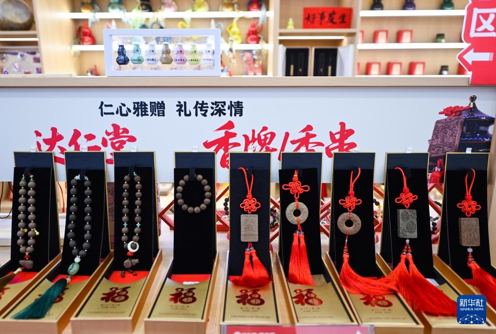 12月24日在位于天津市河北区的达仁堂养生坊拍摄的达仁堂香牌/香串等文创产品。