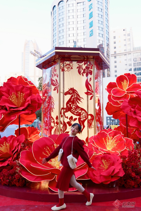 据悉,该美陈装置将持续开放至春节期间。这个元旦及春节,市民可前往昆百大,在红山茶与剪纸马的光影交织中,感受非遗韵味,接收专属昆明的新年祝福。