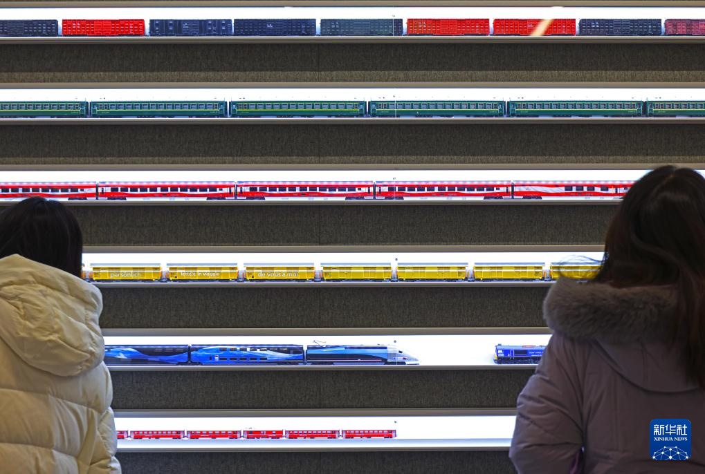 12月27日,观众在主题展上观看火车模型。