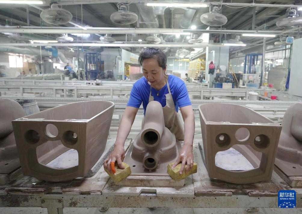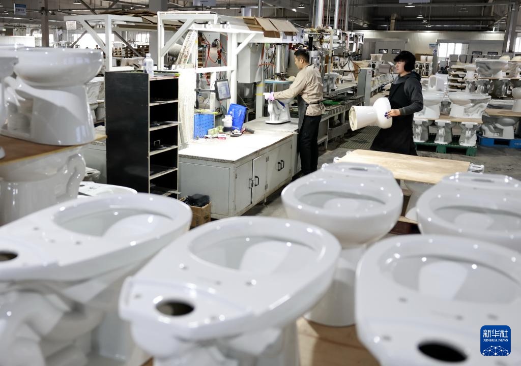 12月26日,工人在唐山海港经济开发区一家卫浴企业的生产车间工作。