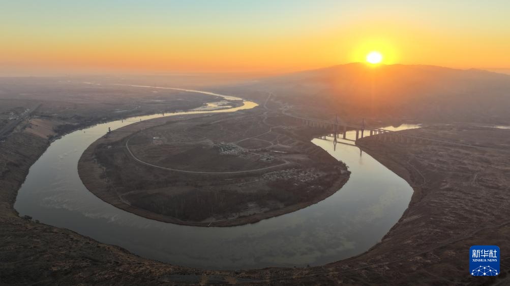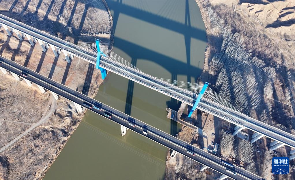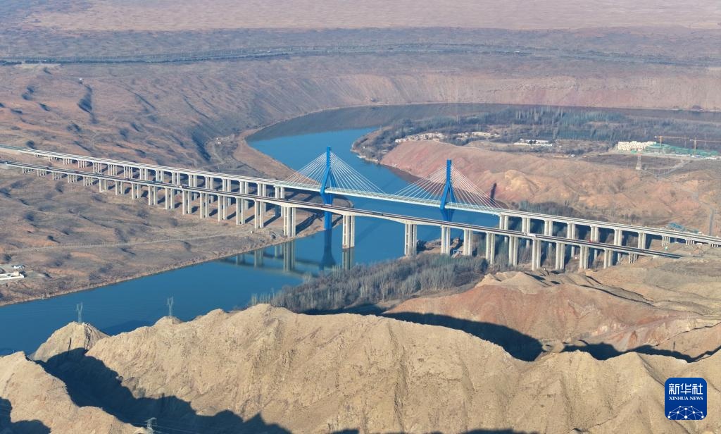 位于宁夏中卫市沙坡头区的黑山峡黄河特大桥(12月27日摄,无人机照片)。