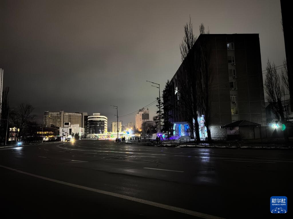 这是12月27日拍摄的停电期间的乌克兰基辅市第聂伯区街道。