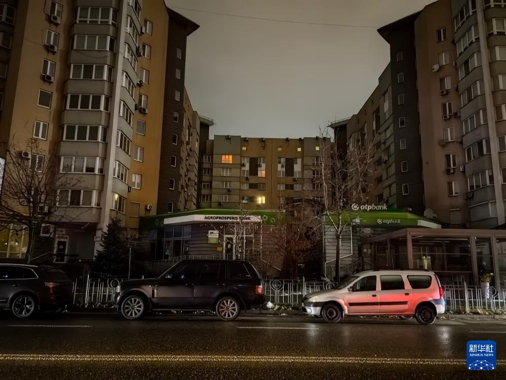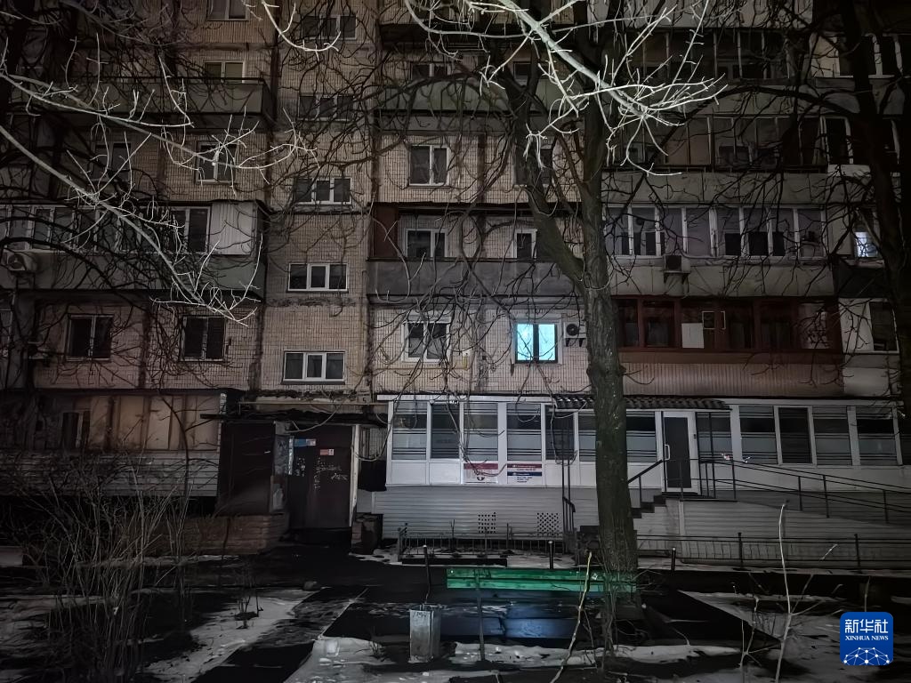 这是12月27日拍摄的停电期间的乌克兰基辅市第聂伯区建筑。