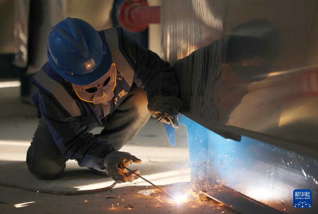 12月30日,中建六局水利水电建设集团有限公司的建设者在施工现场进行焊接作业。