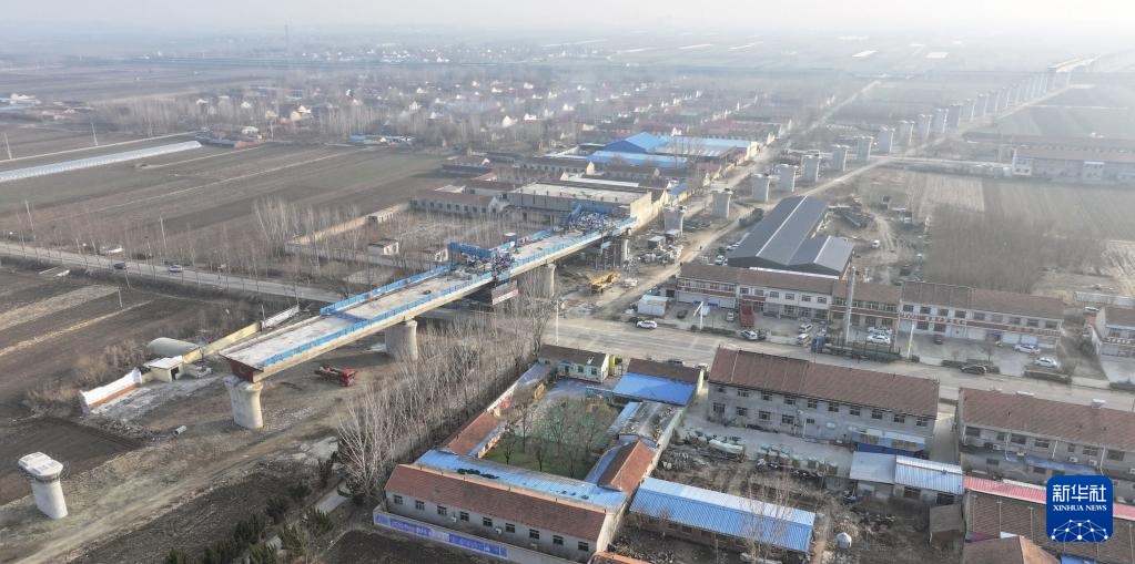 12月30日拍摄的潍宿高铁安丘渠河特大桥连续梁(无人机照片)。