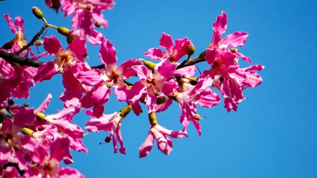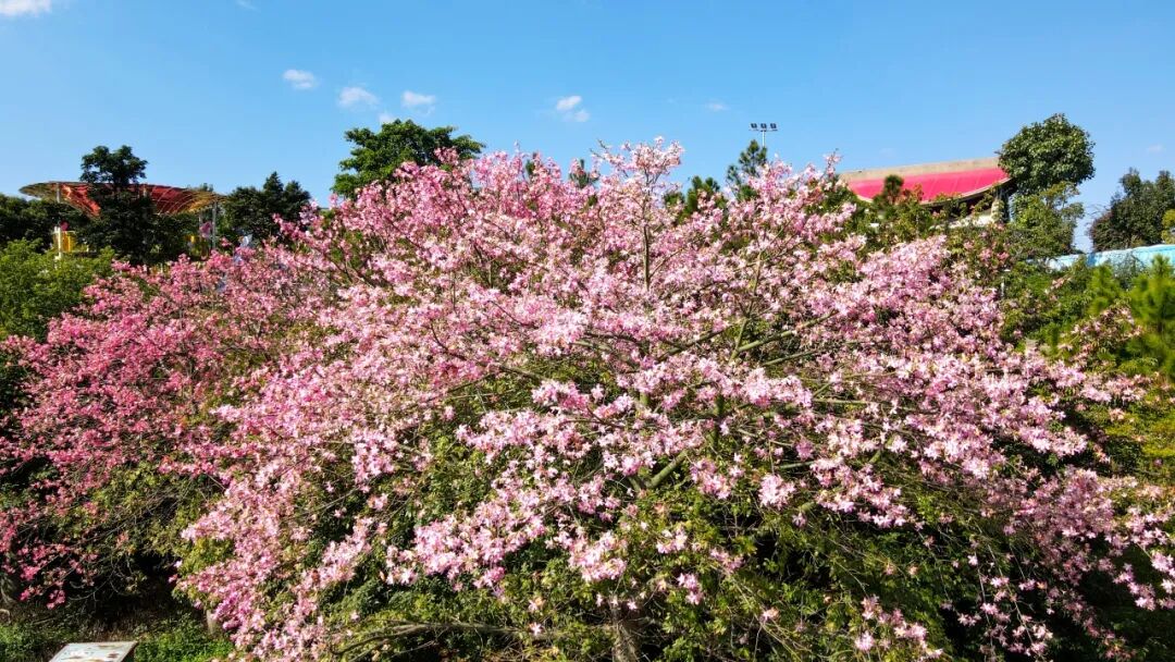 冬日粉韵醉建水 五龙湖公园异木棉绽露芳华