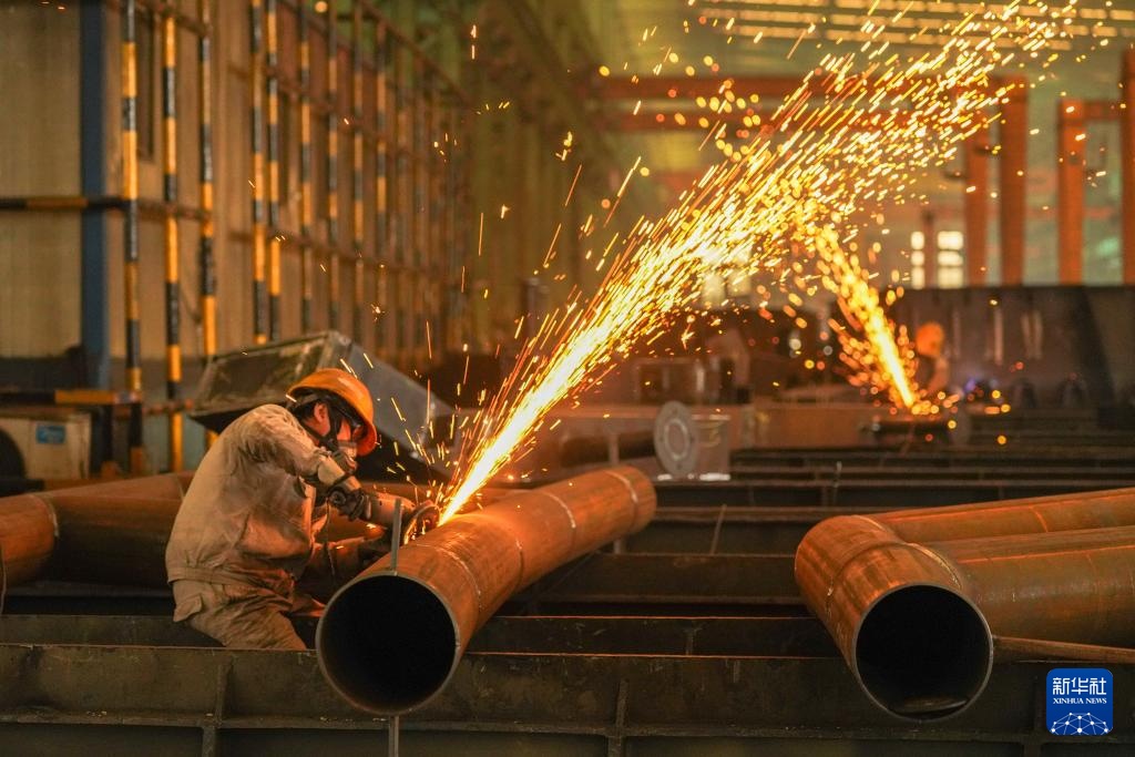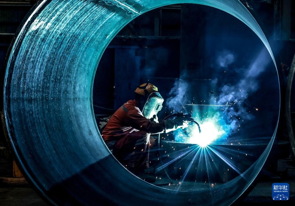 12月31日,在四川眉山天府新区中建钢构四川有限公司车间,工人赶制钢结构产品。