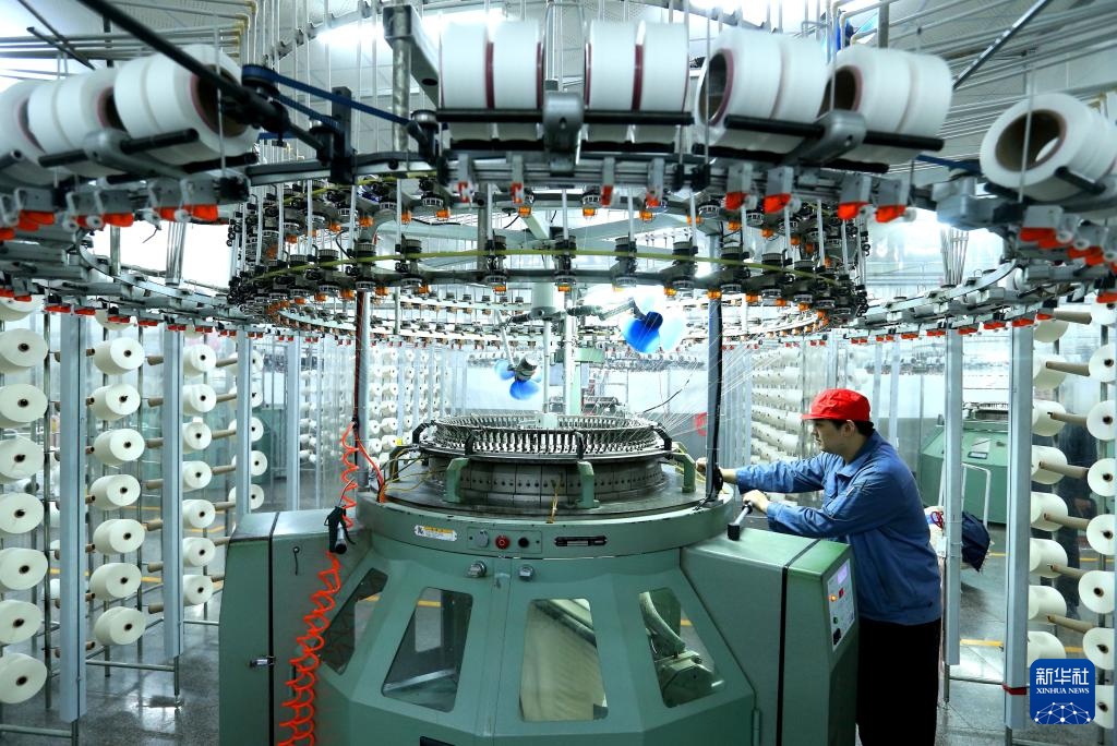 12月31日,山东省青岛市即墨区龙山街道一家服装企业的工人在生产出口到海外市场的产品。