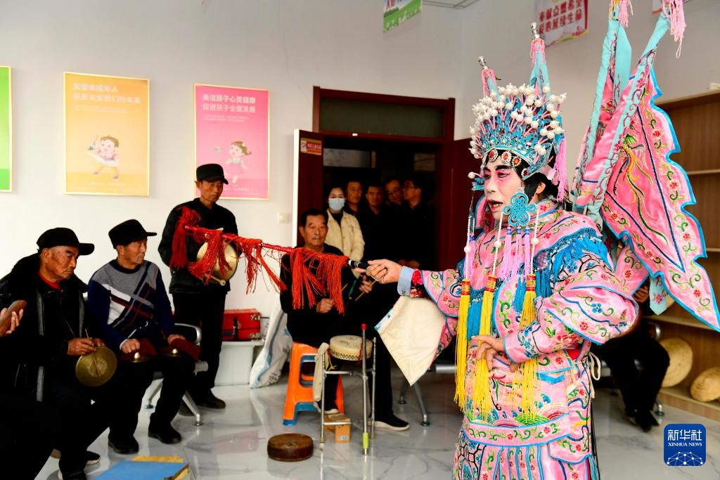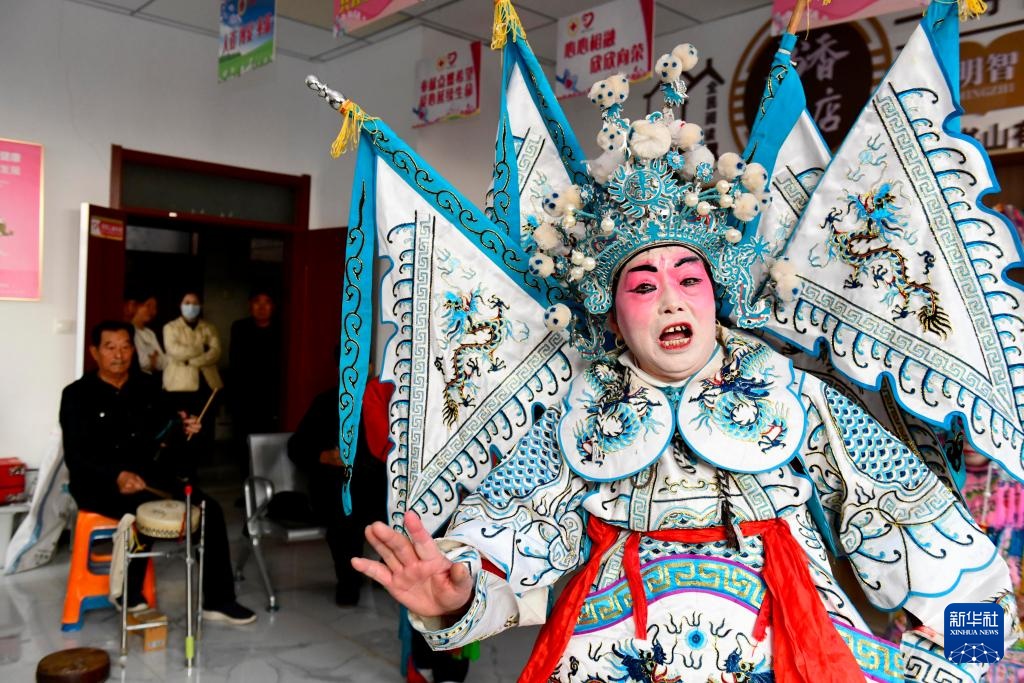 在惠民县辛店镇文化书院,庄户剧团的演员在表演《穆桂英挂帅》(12月30日摄)。
