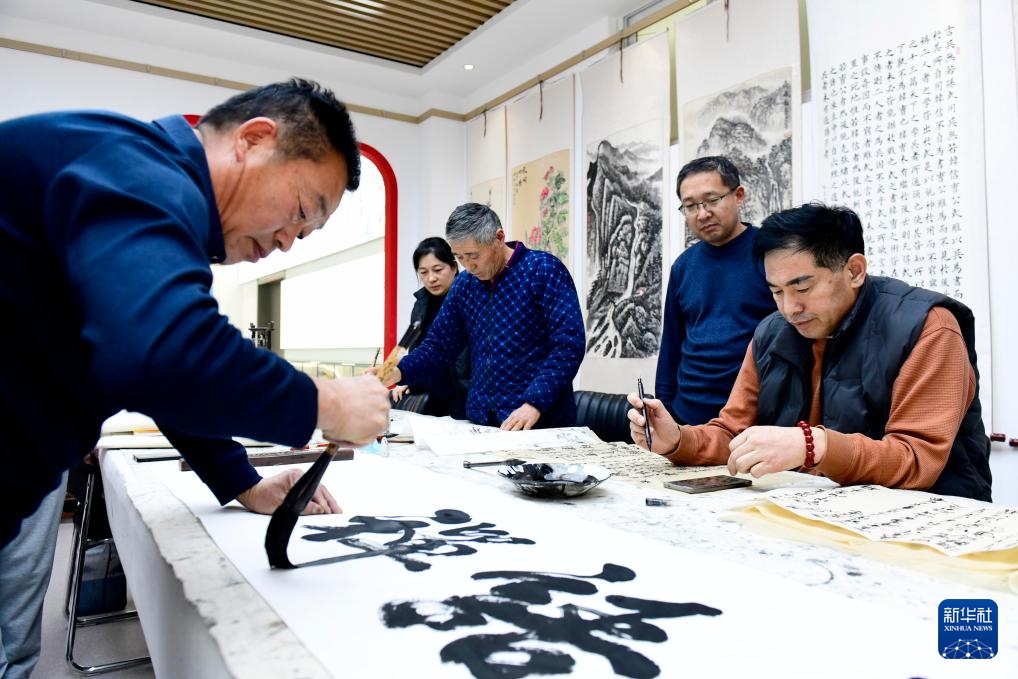在惠民县淄角镇文化书院,社区居民在练习书法(12月30日摄)。