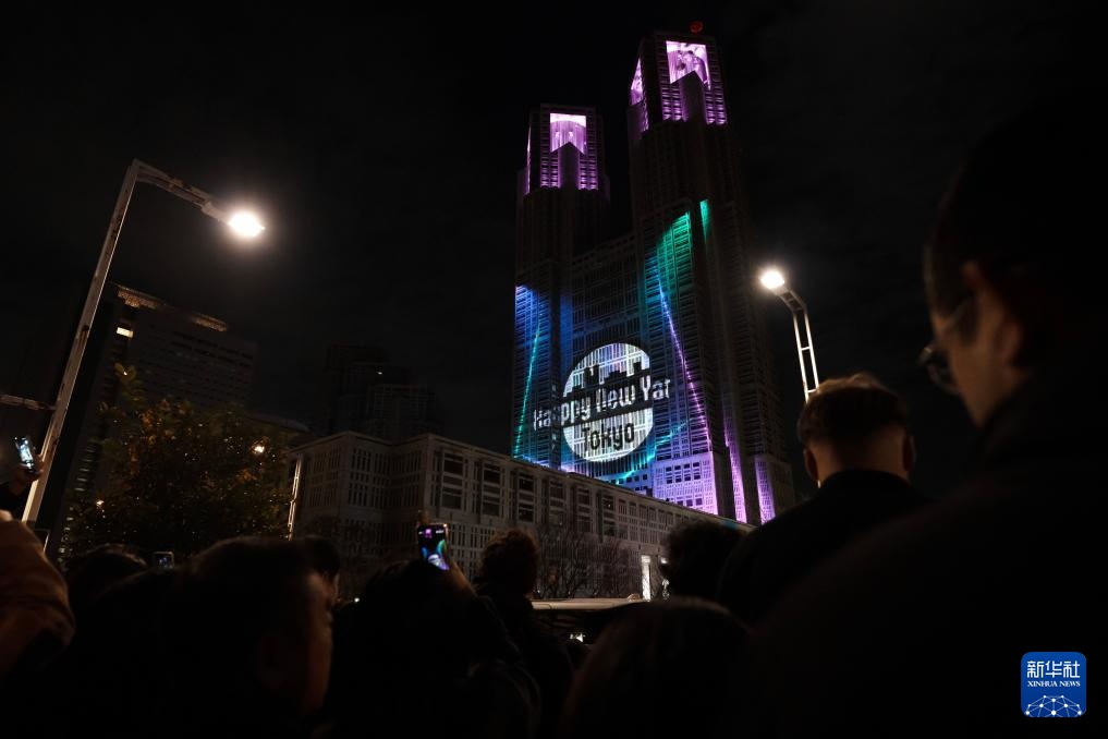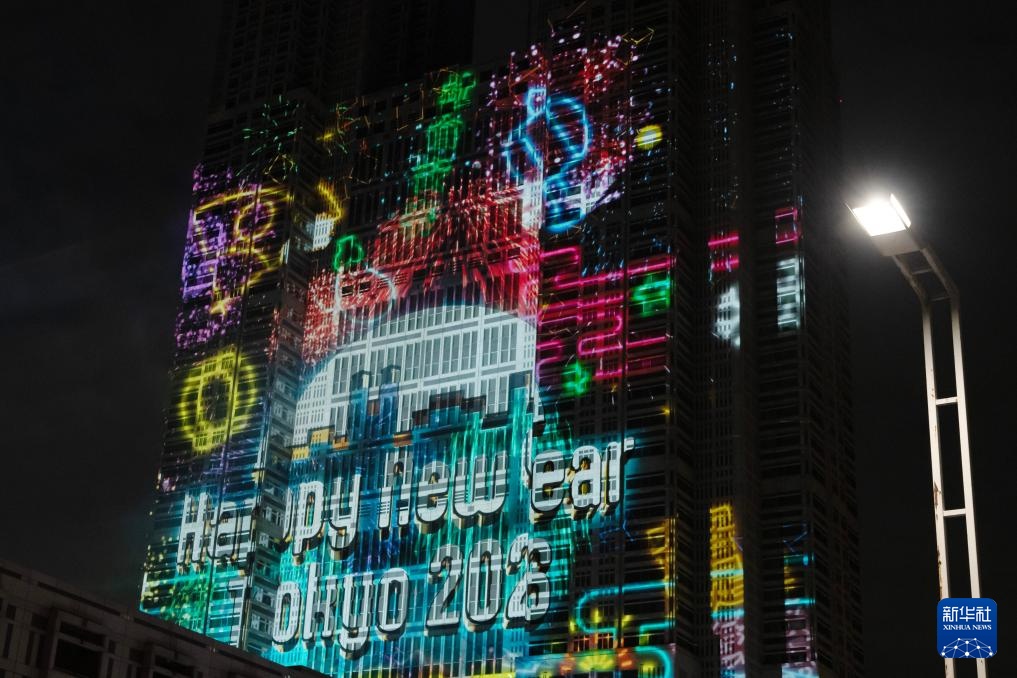这是2026年1月1日凌晨在日本东京都民广场外拍摄的倒计时迎新年活动灯光秀。