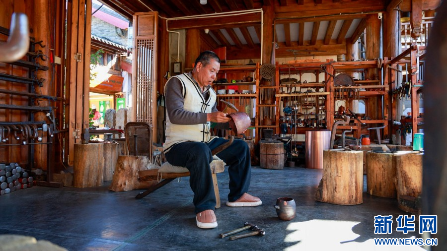 在白沙古镇,以铜器为主的技艺找到了创新发展的路径,积善铜艺负责人和善均利用自家庭院,传承制铜手艺,并结合现代设计理念,开发用铜制作的咖啡杯、摆件,吸引更多人了解铜文化。在政府的帮助下,他打造了研学点。“2025年12月,前来预约的人次已经达到300人左右。”和善均说。