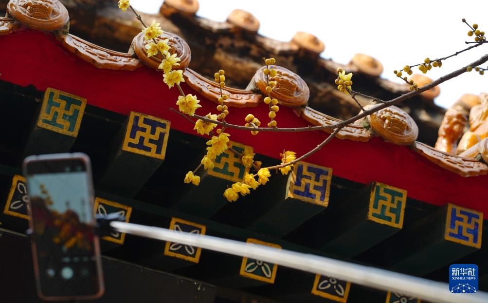 2026年1月5日,在贵州省铜仁市玉屏侗族自治县,人们拍摄绽放的梅花。