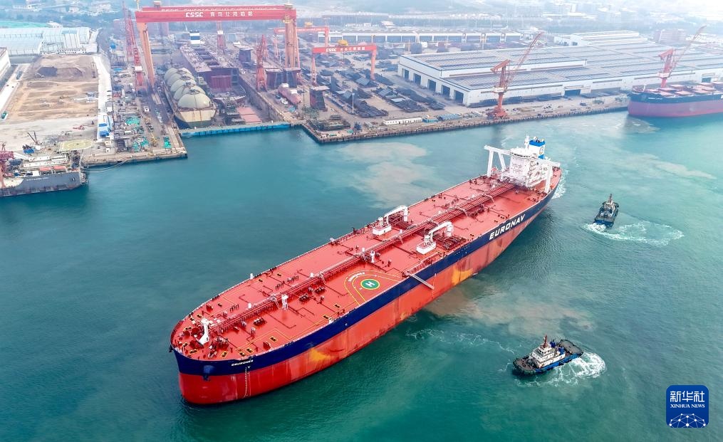 1月14日,由中国船舶集团青岛北海造船有限公司建造的31.9万吨氨预留超大型原油船“EBURONES”轮从青岛启航。据悉,该船是北海造船为比利时EURONAV公司建造的第二艘超大型原油船,实现了2026年生产“开门红”。
