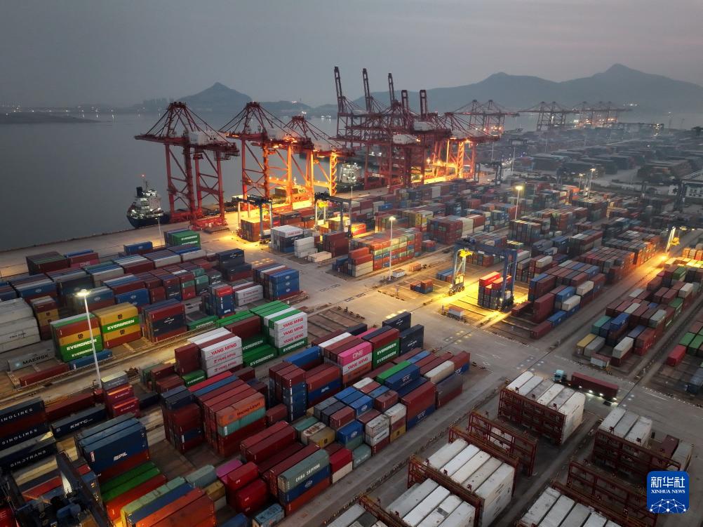 1月14日拍摄的山东港口青岛港外贸集装箱码头(无人机照片)。新华社发(俞方平 摄)