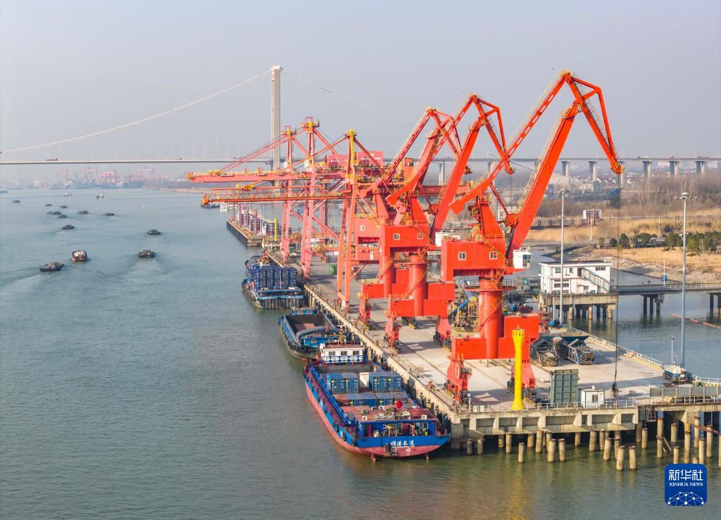 1月14日拍摄的江苏省港口集团南京港龙潭港区生产场景。新华社发(辛一 摄)