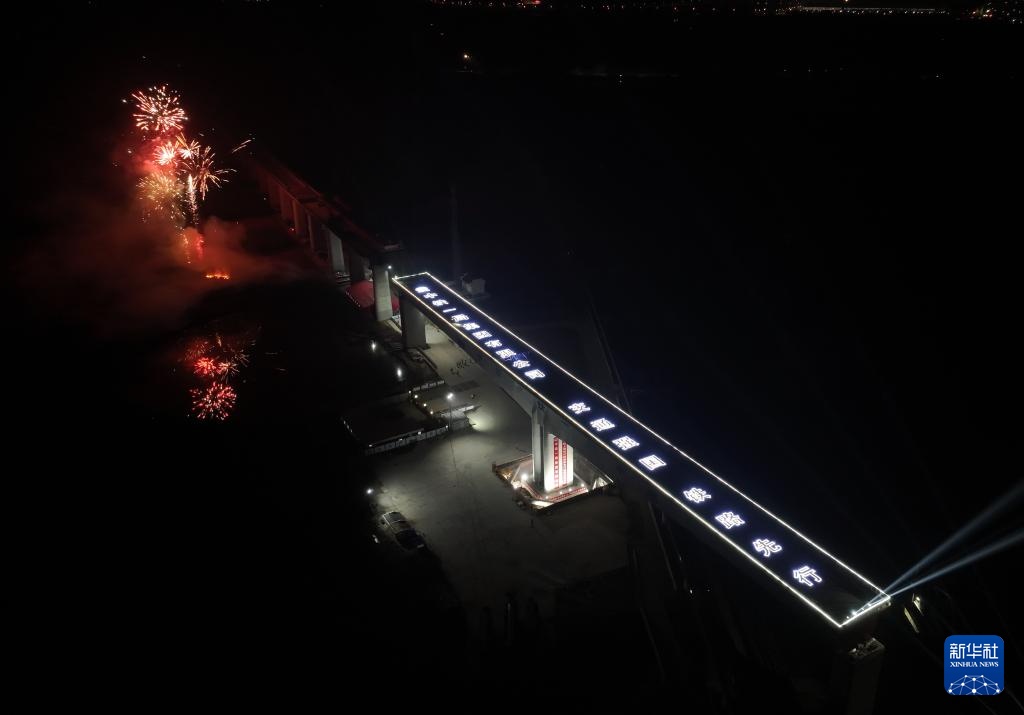 1月16日凌晨,沪宁合高铁跨京沪高铁立交特大桥201.5米预应力混凝土T构转体梁在转体施工中(无人机照片)。