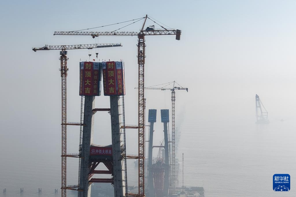 原标题:杭州湾跨海铁路大桥首座主塔封顶