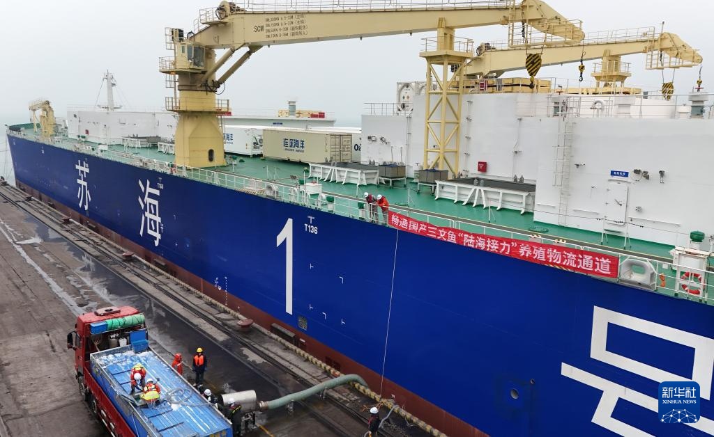 1月16日,16万尾由烟台本地企业培育的三文鱼鱼苗在山东港口烟台港装入10万吨级养殖工船“苏海1号”。随后该船将开赴适宜海域开展游弋式养殖。这是山东省港口集团首单三文鱼养殖工船装舱业务,标志着国产三文鱼“陆海接力”养殖物流通道进一步拓宽。