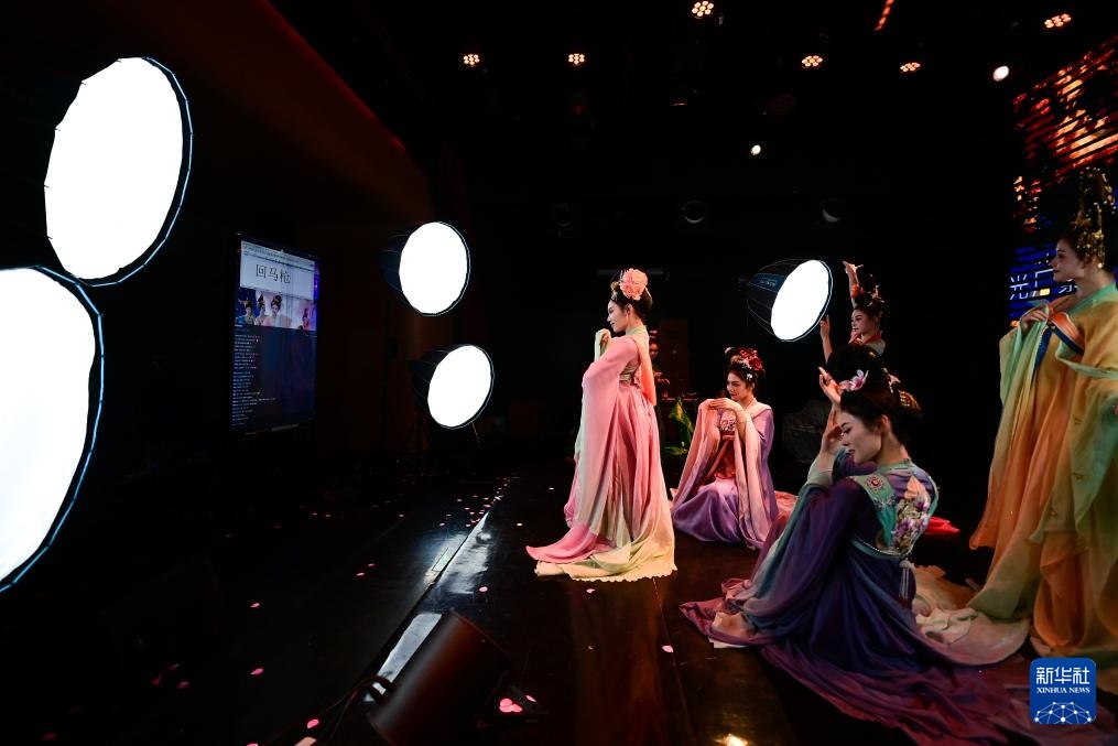 直播间的灯光亮起,舞蹈演员身着仿唐服饰,伴着国风乐曲翩然入镜,屏幕中的评论区实时滚动。在陕西省歌舞剧院,“团播”这一多人演艺直播新形式,正成为专业文艺院团开辟线上“第二舞台”、推动传统文化创新表达的新尝试。