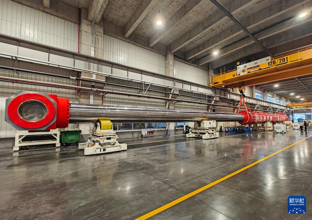 原标题:我国自主研发的超大超长打桩船启闭油缸下线