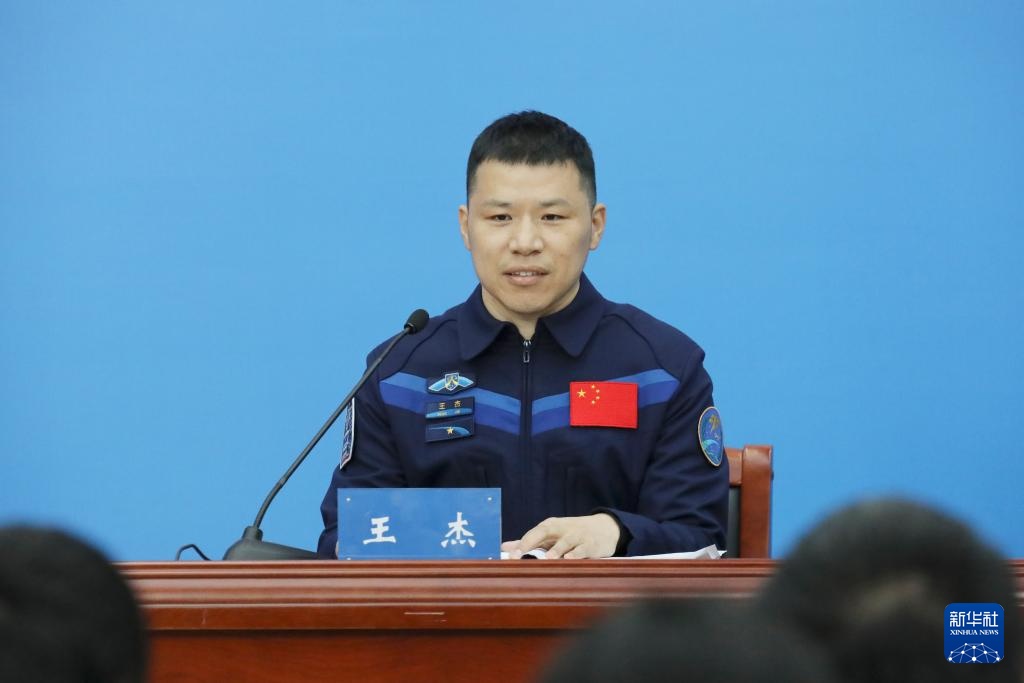 1月16日,航天员王杰在回答记者提问。