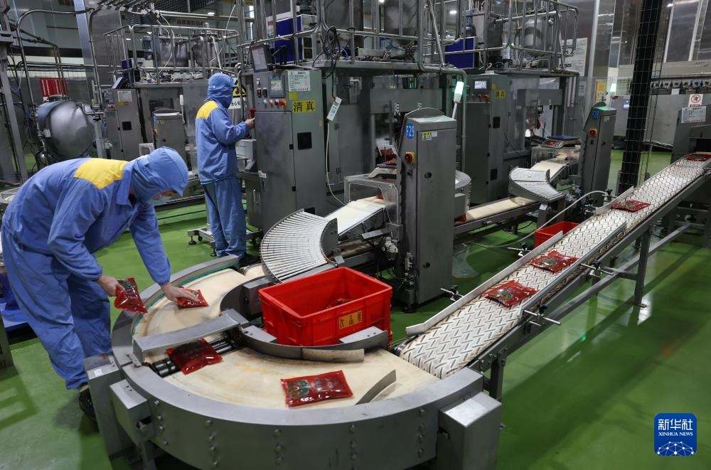 位于四川眉山天府新区的四川川娃子食品有限公司智能生态工厂,采用“手工 + 智能”双轨生产,手工遵循传统核心工艺,智能生产沿用非遗配方,二荆条辣椒在生产线上经过设备清洗、传统工艺烤制、精准配比、无菌封装等11道工序,制作出的烧椒酱保持传统风味,受到市场青睐。