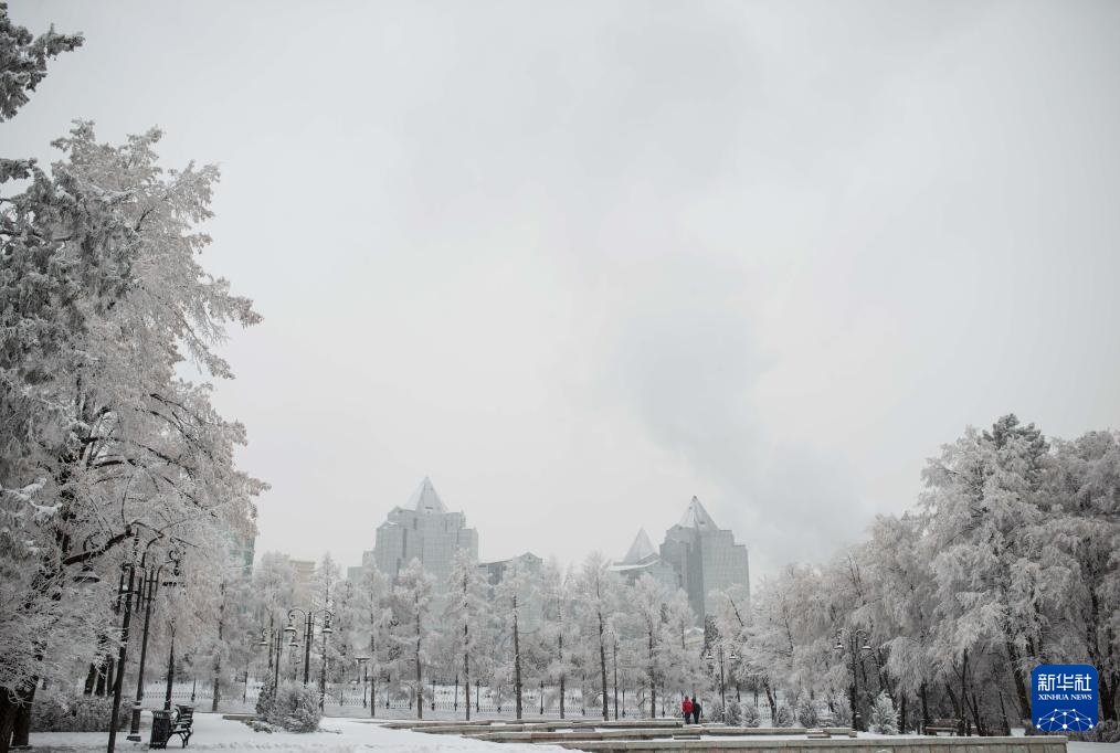这是1月16日在哈萨克斯坦阿拉木图市区拍摄的雪景。