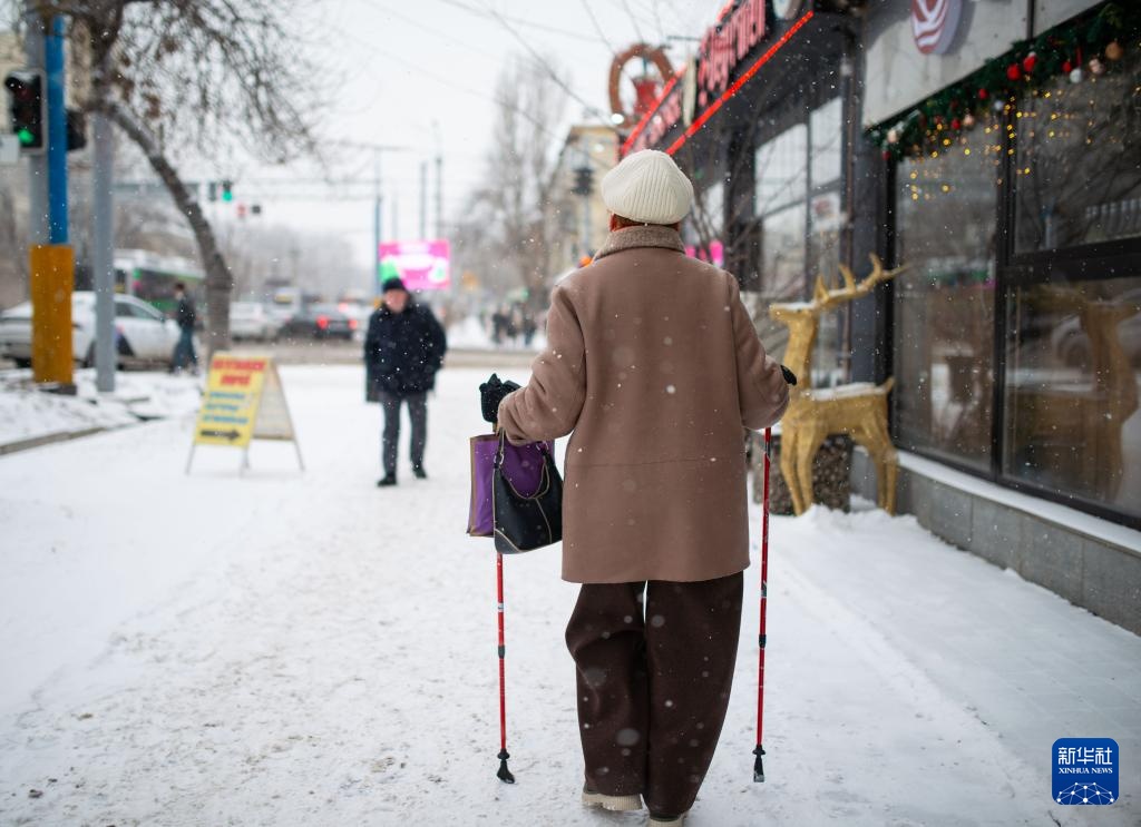 哈萨克斯坦第一大城市阿拉木图16日迎来持续性降雪天气。