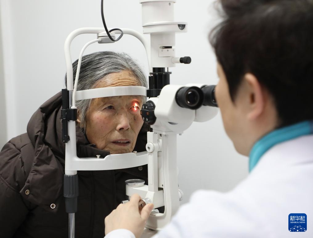 1月17日,在甘肃省漳县人民医院眼科门诊,当地患者接受眼疾检查。