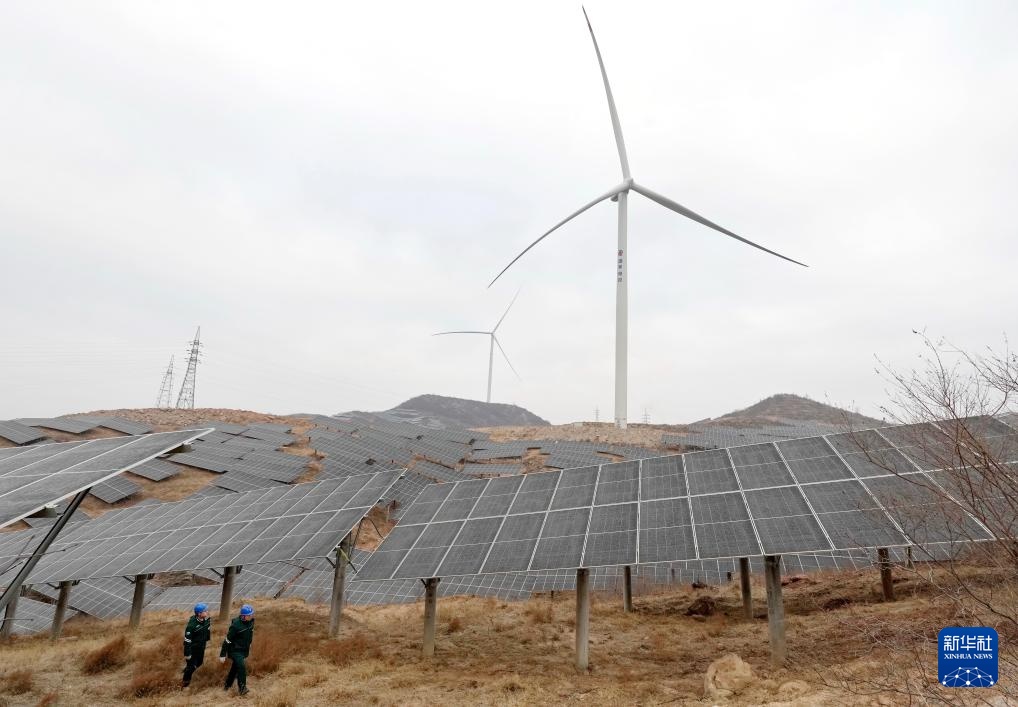 1月17日拍摄的河北省赞皇县院头镇曹家庄村附近的“风光互补”发电场(无人机照片)。