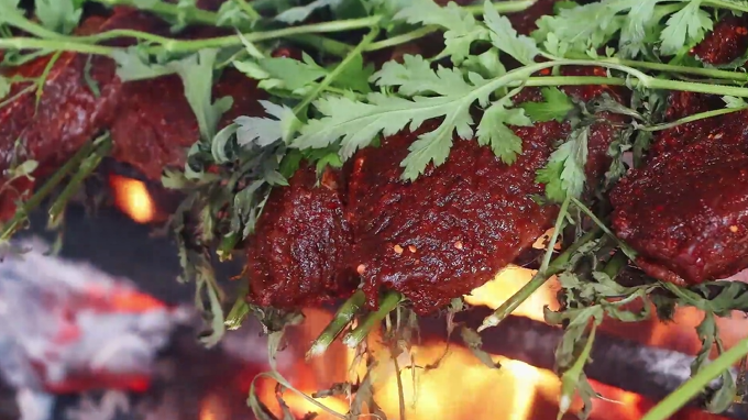 以传统工艺腌制后炭火慢烤