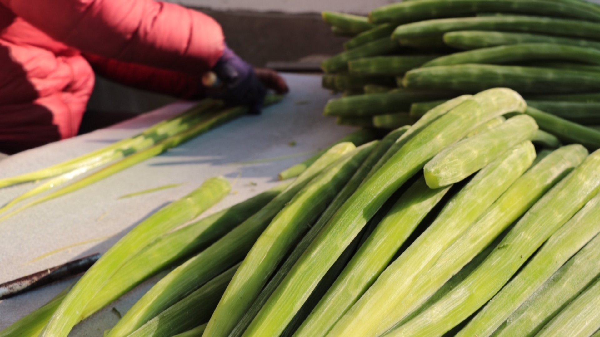 近日,云南省大理白族自治州漾濞彝族自治县上万亩贡菜陆续进入采收期。田间地头,一株株青翠贡菜被整齐收割,经过削皮、划条、晾晒,成为带动当地群众增收的“致富菜”。