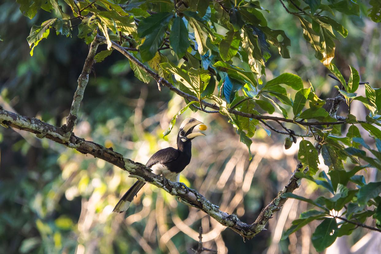 春节前夕,在云南铜壁关省级自然保护区内,国家一级重点保护野生动物花冠皱盔犀鸟和冠斑犀鸟等犀鸟进入选择巢穴、准备繁育的关键时期。“犀鸟巡护队”队员在保护区管护局的指导下,深入山林进行犀鸟巢址调查、食源树种监测与繁殖行为记录,并同步开展栖息地巡护和防火安全宣传等工作,全方位保障犀鸟繁殖季安全。
