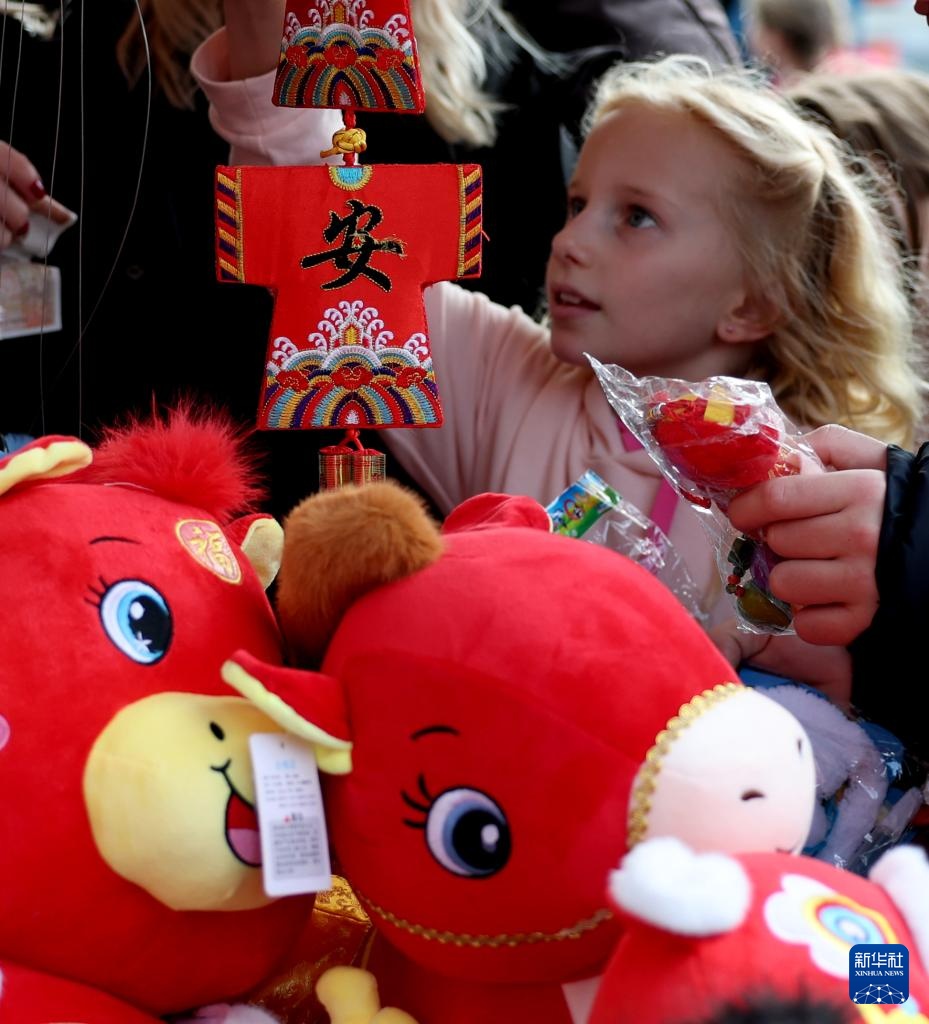 2月22日,一名女孩在英国伦敦市中心的特拉法加广场参加春节庆典。