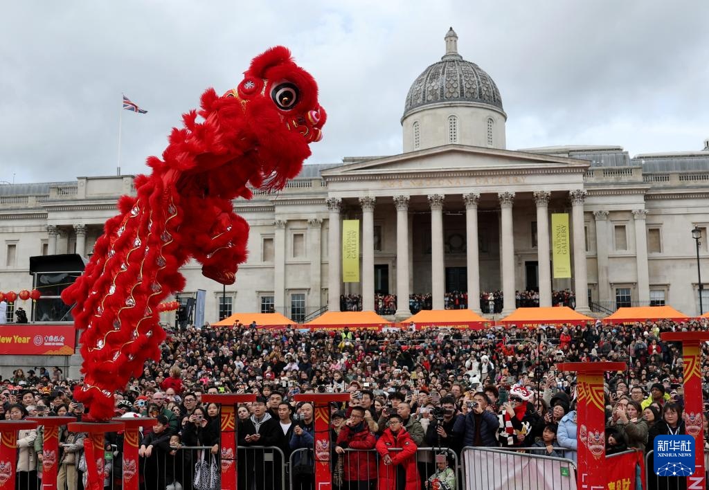 当日,英国伦敦特拉法加广场举行庆典,庆祝中国农历春节。